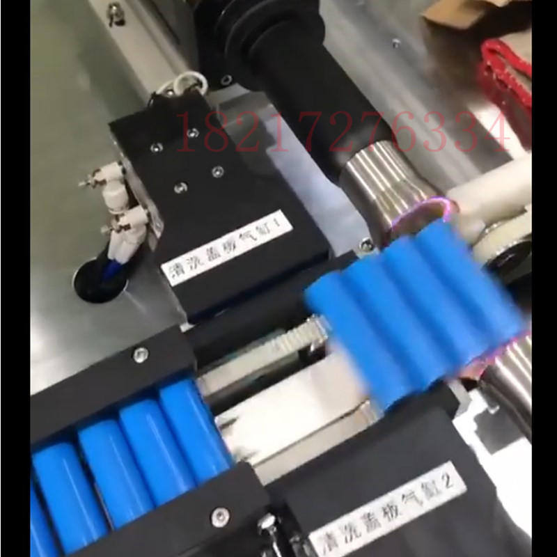 處理過程:使用等離子表面處理機,對18650電池的首尾位置進行等離子表面處理,按照一定的功率、速度和距離,使18650兩端鎳鉻金屬片的表面張力從小于36提高46(含)以上。
